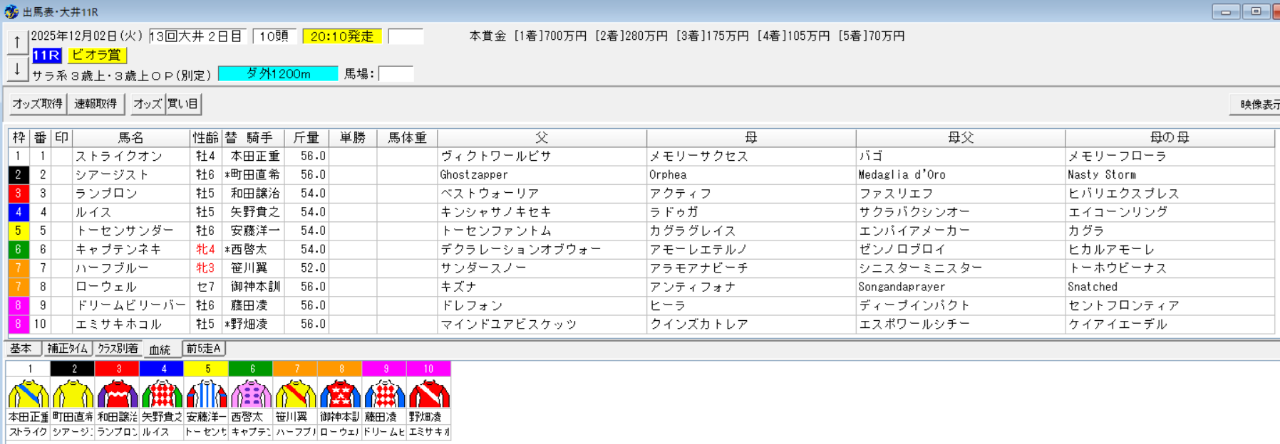 12月2日(火曜)に大井競馬場で行われる【ビオラ賞2025】D1200mの予想です。