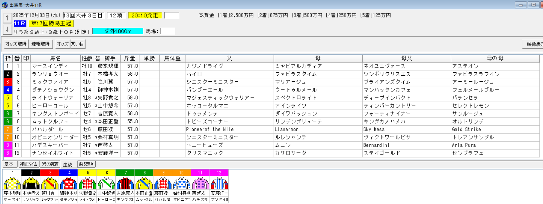 12月3日(水曜)に大井競馬場で行われる【勝島王冠2025】D1800mの予想です。