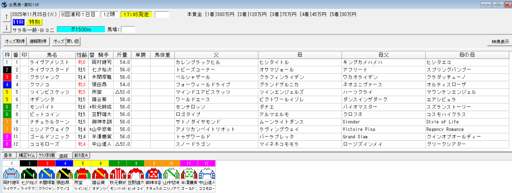 11月25日(火曜)に浦和競馬場で行われる【群馬県畜産協会長賞特別2025】D1500mの予想です。