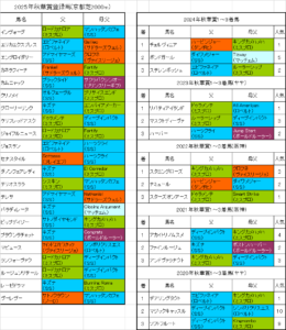 弥生賞の出走馬と過去5年の血統データを予想に役立つ見やすい色分け出馬表にまとめています。
